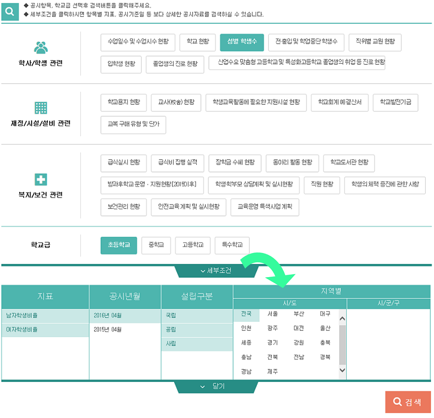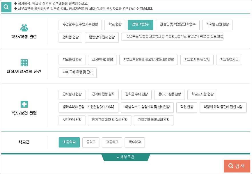 ¸ÞÀÎ È­¸é ¶Ç´Â »ó´Ü¸Þ´º¿¡¼­ ÁÖ¿äÁöÇ¥°Ë»ö > °ø½ÃÇ׸ñ ¼±Åà > Çб³±Þ¼±Åà > °Ë»ö